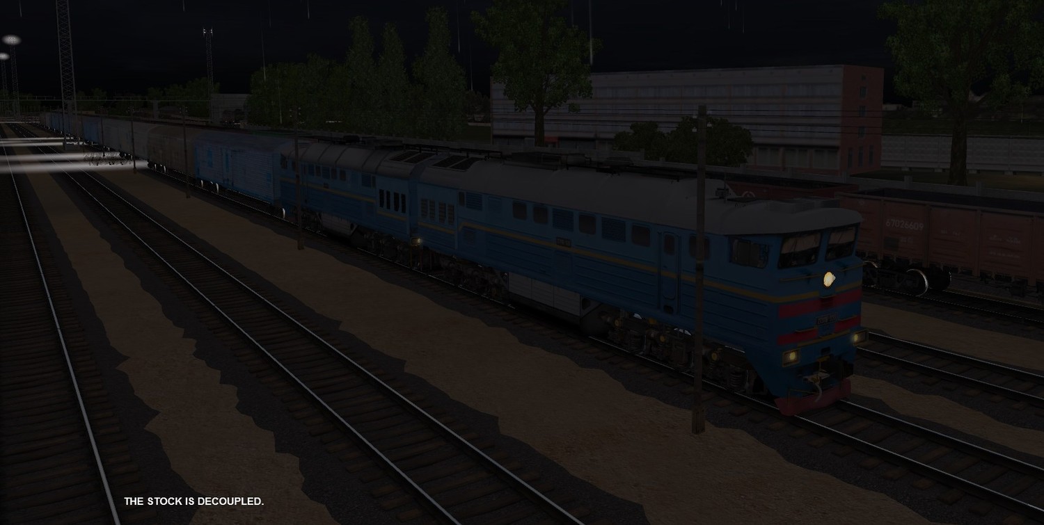 А потом появилась надпись заехать за z1 и диспетчер доложил о готовности маршрута. Я подождал и начал движение, но состав остался в сцепке с локомотивом. Я долго ждал, но скрипт так и не захотел меня разъединять. Я отцепил вагоны вручную (потому как подумал, что сессия опять не будет работать). А когда проехал z1 - меня направили к новому составу, но с другой стороны. Когда я с ним состыковался, появляется надпись THE STOCK IS DECOUPLED, ну а потом ехать за z5. После z5 - заехать за z2, ну и далее опять стыковка с тем же составом, но уже с правильной стороны в направлении Джанкоя. Далее сценарий не поломался. Сработал скрипт и я поехал в Джанкой. "Выкатывания" стоящих вагонов нигде не наблюдалось. Переводы стрелок были нормальными и своевременными. Все встречные терпеливо ожидали. Всё прошло идеально.