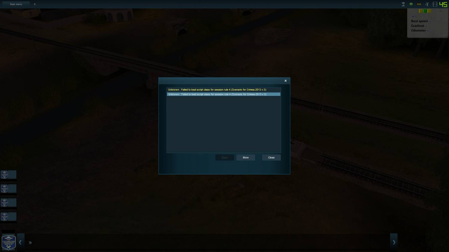 | Тогда значит я его уже скачивал и устанавливал.Но при заходе на сессию все равно выдает ошибку. Сейчас попробую собрать все что там неправильно в контент менеджере показать, и что с этим делать. Добавлено (01.05.2016, 14:17) --------------------------------------------- скачал уже все что нужно.Поставил.Все равно вылазит жук и пишет -Unknown : Failed to load script class for session rule 4 (Scenario for Crimea-2013 v.3)