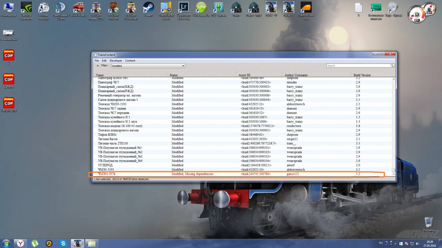 Далее открываешь папку Installed (установленные) и нажимаешь на Status, получается такая лесенка. Крути колесико мыши вниз и все объекты будут идти по статусу, например, встроенные, скаченные с ДЛС и установленные локально... А самые последние будут ошибки или объекты в которых есть отсутствующие связи: