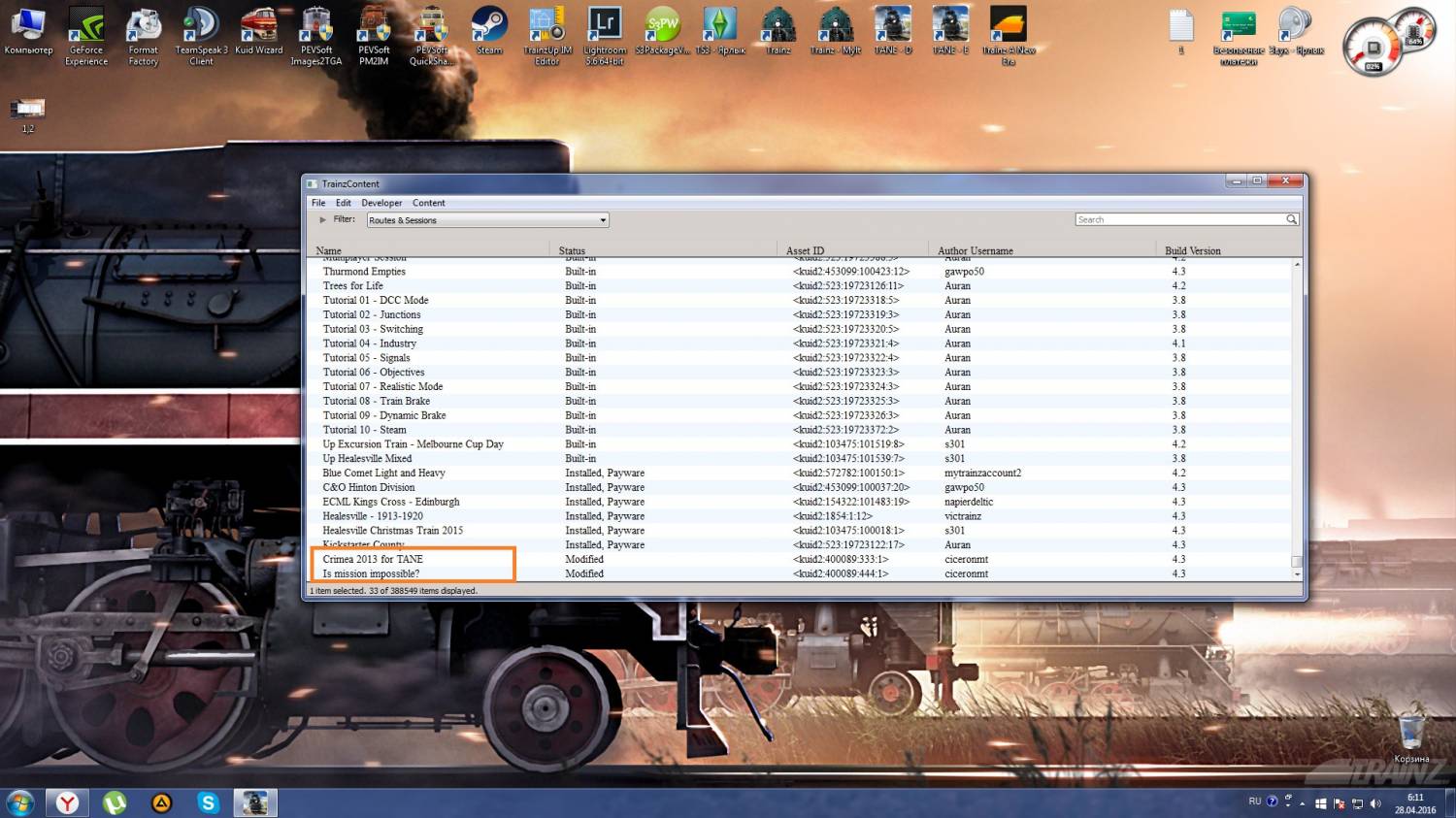 | Здесь пишем сообщения обо всех обнаруженных багах в версии 3.6 и выше (для TANE). Недостающие куиды спрашиваем в другой теме, хотя все новые ассеты есть на ДЛС. Для 3.6 и выше нужна обновлённая звуковая библиотека: <kuid2:400089:34:4>. В текущей версии сценария другая электричка. Возможно, для этой версии не хватит куидов, качайте. Если у вас опоры КС съехали, а провода порвались, значит, надо обновить эту DC c DLS. Здесь пак обновлённых сплайнов для тех, кто не может скачать с DLS. Актуальная версия карты 5.5, скачать можно здесь. Актуальная версия сценария 5.4, если вам хочется сохранить изменения погоды и музыкальные заставки, скачайте этот вариант (исправление от 01.02.2019). Далее, если захочется это изменить, откройте на редактирование конфиг сценария <kuid2:400089:555:24>, там в верхней части будет контейнер: