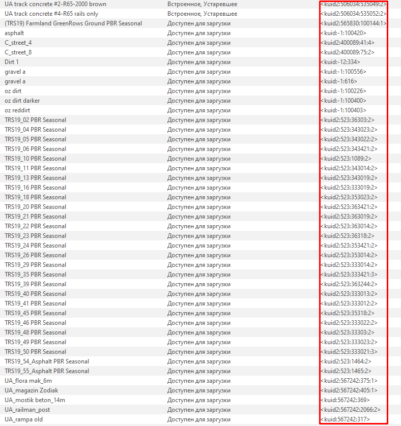 | Для справки: куид <kuid2:211025:20128:1> Миша RMM не обновлял. Оригинал <kuid:211025:20128>, он лежит на DLS. Также много куидов ,,2,, от Неоклая, а оригиналы лежат также на DLS. Кто то просто билд перебил, обновил куиды до ,,2,, и всё. Приходится в конфиге маршрута убирать эти ,,обновления,, , для меня лично не хочется иметь маршрут и дополнения с пометкой ,,Modified,, , когда они ,,Installed from DLS,,.