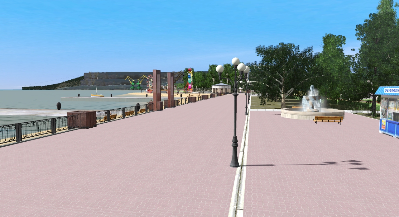| Проект переработан под Trainz-19. Актуальные ассеты: <kuid2:400089:81:2>,<kuid2:400089:82:2>,<kuid2:400089:110:2>,<kuid2:400089:111:3>, <kuid2:400089:333:47>,<kuid2:400089:444:18>,<kuid2:400089:555:38>. Обновлены локомотивы ВЛ8М. СКАЧАТЬ. Полный пак объектов от Mongol build 4.6: скачать 160 МБ, если не получится с ДЛС, можно здесь. Вокзалы Федодосии, Кировской, Джанкоя и Новоалексеевки исправленные Мongolом можно скачать с ДЛС или здесь для версии 5.7. Если у кого в 19-м некорректно видны текстуры земли, вот полный пак - ставить с перезаписью. Если проблем нет, оставляйте как есть. Вариант карты с маршрутизацией zxPath: <kuid:400089:100013>,<kuid2:400089:100014:1>.