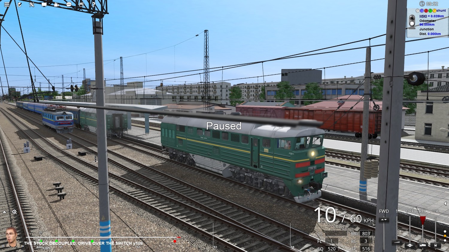После обновления игры до SP5: Взял один из своих любимых поездов - грузовой от станции "Крым". В направлении от Крым к Керчь, остановился и отцепился, по станции "Керчь-завод". Локомотив убрал в тупик и жду, когда мне прицепят ещё 10 вагонов, но ничего не происходит. Недолго думая, я решил посмотреть, куда пропал маневровый состав. Оказалось, он стоит перед стрелкой n19, которая "не по маршруту". Подождав ещё немного, я решил перевести эту стрелку вручную, надеясь, что маневровый всё же продолжит движение, но вместо этого, чмуха отцепилась от этих 1- вагонов и уехала от них, после чего мне выдали команду "прицепиться". Т.е. эти 10 вагонов мне не прицепили и дали команду ехать с тем, чем отправился от Крым.