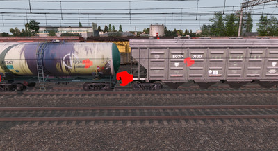 | Добрый, у меня автосцепки становятся неактивными только после прицепки лока. Проблема явно в хвостовых бочках. После их отцепки состав едет. Также оставлял в хвосте 5 бочек - уже еле сдвинул с места. Упомянутая галка стоит.