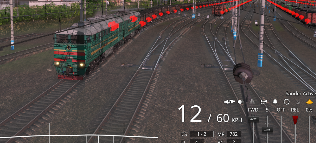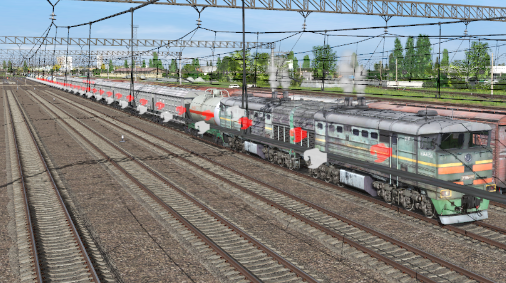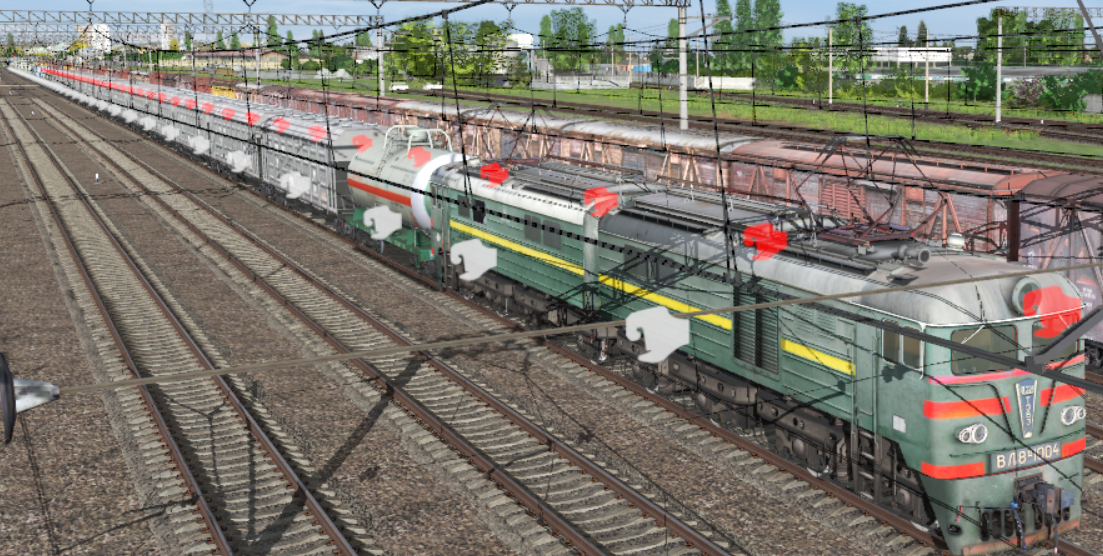 | Всем привет и мирного неба.  Решил попробовать грузовой из Евпатории и обнаружилась та же проблема: после прицепки состав не трогается. Цитата Раз не работает, предлагаю просто цепляться к составу с крытыми вагонами на соседнем пути, вручную переведя стрелки. Этот вариант не подходит, так как после сцепки с крытыми скрипт продолжает ждать сцепки с train0 со всеми вытекающими.  Методом проб и ошибок выяснилось, что проблема с хопперами <kuid:478358:100066> под номером 144 в kuidtable. Поэтому предлагаю авторам разобраться с этими хопперами, а игрокам временно заменить этот хоппер на что-то другое. На всякий случай добавлю, что проблема именно с тормозами, тк после сцепки лок не начинает качать главный резервуар