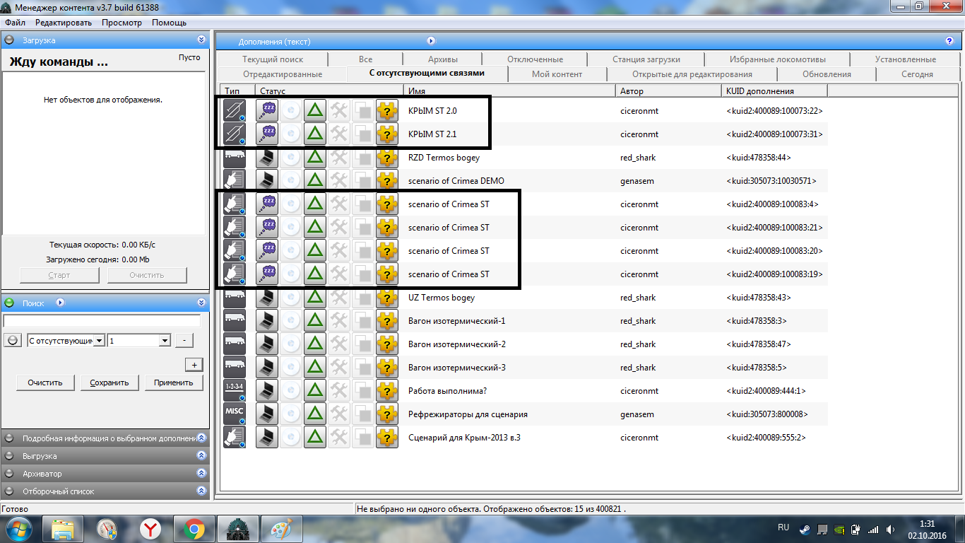 | вот что это такое? Сценарий запускал, запускается только карта крыма, и расписание... на сценарии ниже там 2.21, 2.22 то я создавал уже